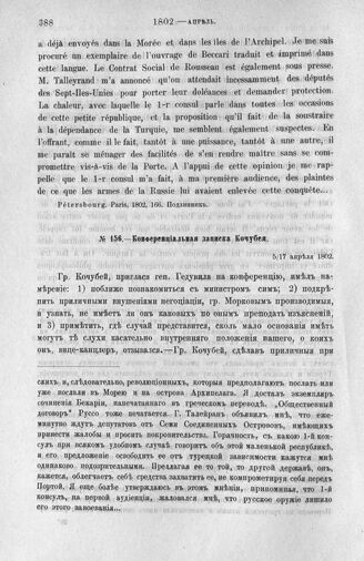 Конференциальная записка Кочубея. 5/17 апреля 1802 г.