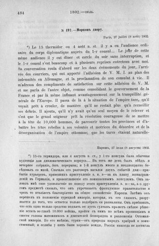 Морков двору. Париж, 27 июля (8 августа) 1802 г.