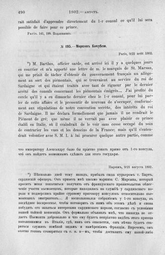 Морков Кочубею. Париж, 9/21 августа 1802 г.