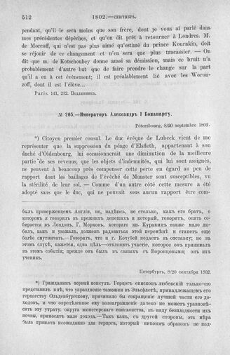 Император Александр I Бонапарту. Петербург, 8/20 сентября 1802 г.