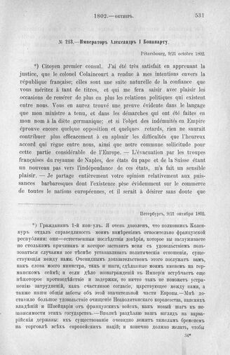 Император Александр I Бонапарту. Петербург, 9/21 октября 1802 г. // Pétersbourg. Cabinet, 1802, 10. Черновая.