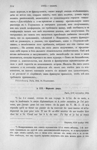 Морков двору. Париж, 6/18 ноября 1802 г. // Pétersbourg. Paris, 1802, 122. Подлинник.