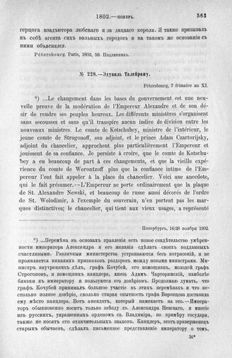 Эдувиль Талейрану. Петербург, 16/28 ноября 1802 г. [1]