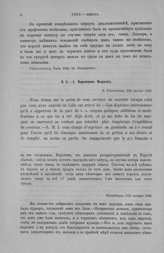 А. Воронцов Моркову. Петербург, 8/20 января 1803 // Pétersbourg. Paris, 1803, 11. Подлинник.