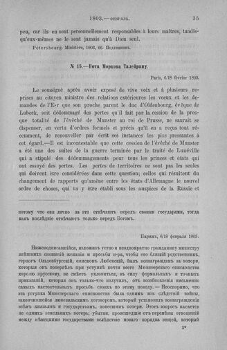 Нота Моркова Талейрану. Париж, 6/18 февраля 1803 // Paris, 142, 62. Подлинник. — Pétersbourg. Paris, 1803, 105. Список.