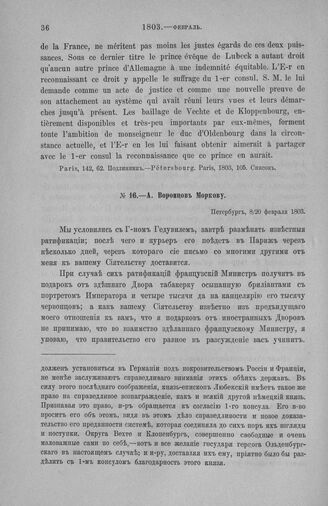 А. Воронцов Моркову. Петербург, 8/20 февраля 1803 // Pétersbourg. Paris, 1803, 25. Черновая.