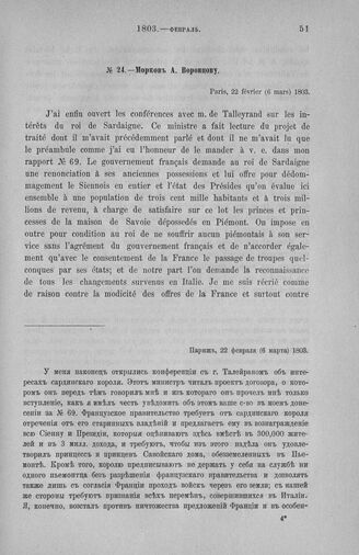 Морков А. Воронцову. Париж, 22 февраля (6 марта) 1803