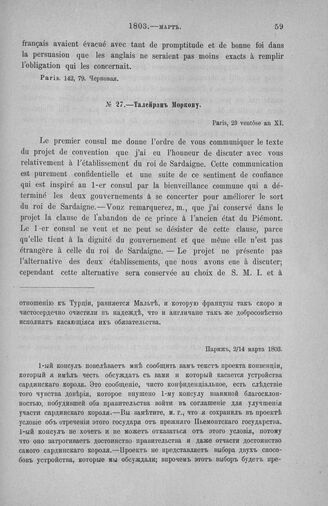 Талейран Моркову. Париж, 2/14 марта 1803 // Pétersbourg. Paris, 1803, 79. Список.