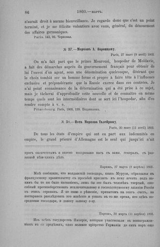 Нота Моркова Талейрану. Париж, 30 марта (11 апреля) 1803 // Paris. 142, 100. Подлинник.
