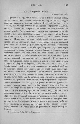 А. Воронцов Моркову. 25 мая (6 июня) 1803