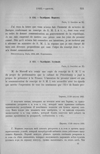 Талейран Моркову. Париж, 17/29 августа 1803 // Pétersbourg. Paris, 1803,429. Подлинник.