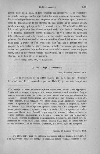 Убри А. Воронцову. Париж, 27 февраля (10 марта) 1804 // Pétersbourg. Paris, 1804, 83. Подлинник.