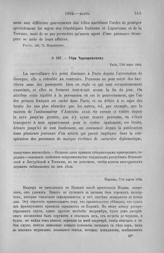 Убри Чарторижскому. Париж, 7/19 марта 1804 // Pétersbourg. Paris, 1804, 95. Подлинник.