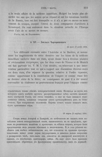 Доклад Чарторижского. 28 марта (9 апреля) 1804 // Pétersbourg. Ministère, 1804, 6. Подлинник.