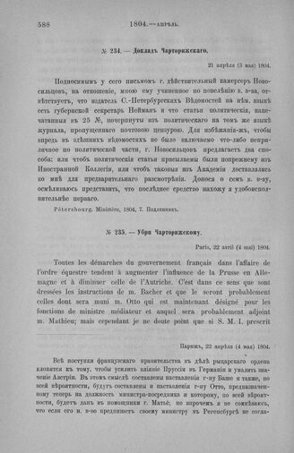 Доклад Чарторижского. 21 апреля (3 мая) 1804 // Pétersbourg. Ministère, 1804, 7. Подлинник.