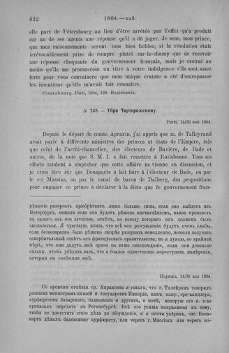 Убри Чарторижскому. Париж, 14/26 мая 1804 // Pétersbourg. Paris, 1804, 146. Подлинник.