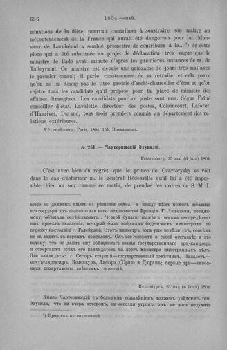 Чарторижский Эдувилю. Петербург, 25 мая (6 июня) 1804 // Paris. 143, 132. Список.