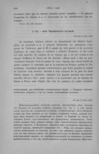 Нота Чарторижского Эдувилю. 26 мая (7 июня) 1804