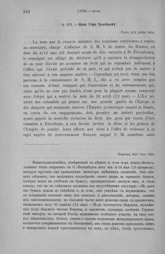 Нота Убри Талейрану. Париж, 9/21 июля 1804