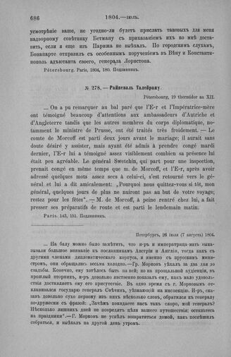 Райневаль Талейрану. Петербург, 26 июля (7 августа) 1804