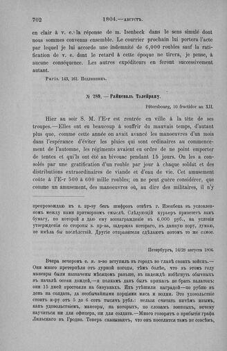 Райневаль Талейрану. Петербург, 16/28 августа 1804