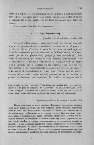 Убри Чарторижскому. Франкфурт-на-Майне, 22 сентября (4 октября) 1804 [1] // Pétersbourg. Paris, 1804, 216. Подлинник.