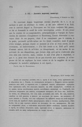 Лессепс морскому министру. Петербург, 15/27 ноября 1804 // Paris. 144, 13. Подлинник.
