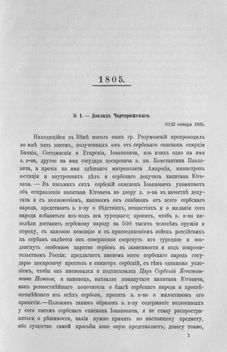 Доклад Чарторижского. Предложение епископа Иоанновича о независимой Сербии. 10/22 января 1805 г.