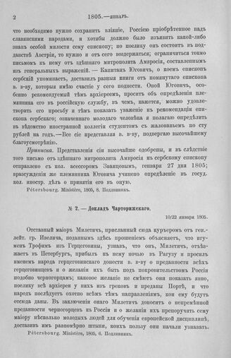 Доклад Чарторижского. Просьба герцеговинцев о покровительстве. 10/22 января 1805 г. // Pétersbourg. Ministère, 1805, 6. Подлинник.