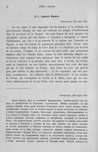 Записка Вернега. Виды Бонапарта на Турцию. Петербург, 8/20 марта 1805 г.