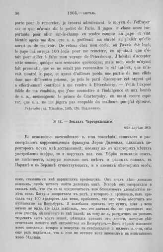 Доклад Чарторижского. Переписка Дидевиля. 6/18 апреля 1805 г.
