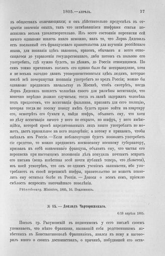 Доклад Чарторижского. Шпион Франкини. 6/18 апреля 1805 г.