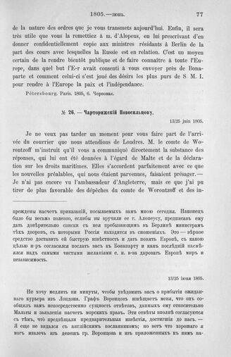 Чарторижский Новосильцову. Следует прервать переговоры с Бонапартом. 13/25 июня 1805 г. // Pétersbourg. Paris, 1805, 7. Черновая.