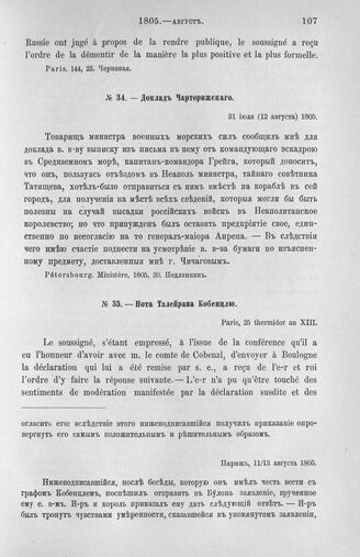 Нота Талейрана Кобенцлю. Наполеон отказывается от посредничества Австрии. Разоблачение действий России. Приглашение Австрии к нейтралитету. Париж, 11/13 августа 1805 г.