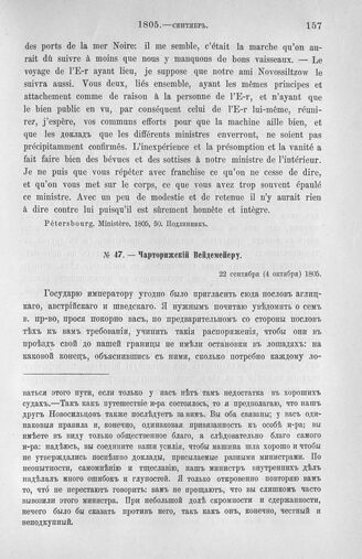 Чарторижский Вейдемейеру. Послы Англии, Австрии и Швеции. 22 сентября (4 октября) 1805 г. // Pétersbourg. Ministère, 1805, 94. Черновая.
