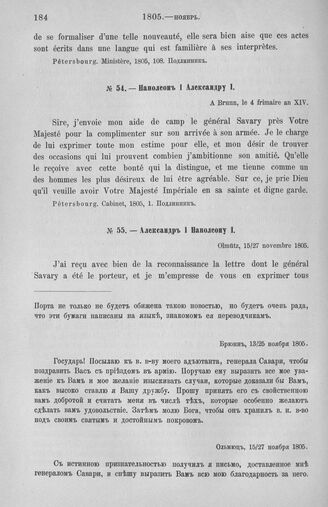 Наполеон I Александру I. Поздравление с прибытием в армию. Брюнн, 13/25 ноября 1805 г. // Pétersbourg. Cabinet, 1805, 1. Подлинник.