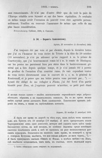 Вернег Санковскому. Виды Бонапарта на Далмацию. Положение Кроации. Аграм, 23 ноября (5 декабря) 1805 г. // Pétersbourg. Ministère, 1805, 143. Подлинник.