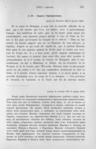 Вернег Чарторижскому. Массена. Каринтия, Штирия, Турция. Судьба Вернега. Аграм, 21 декабря 1805 г. (2 января 1806 г.) // Pétersbourg. Ministère, 1805, 144. Подлинник.