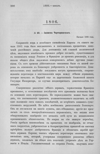 Начало года. Записка Чарторижского. Политика России с 1801 г. Причины разрыва с Францией. Начало 1806 года // Pétersbourg. Ministère. 1806, 63/1. Подлинник.