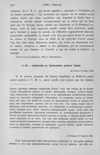 Добавление к Замечаниям насчет Турции. Демонстрация против Порты. Императорский титул Бонапарта. Инструкция и деньги Италинскому. 24 февраля (8 марта) 1806 г.