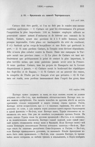 Приложение к записке Чарторижского. Необходимость удержания Катарро. 9/21 апреля 1806 // Pétersbourg. Ministère, 1806, 18. Подлинник.