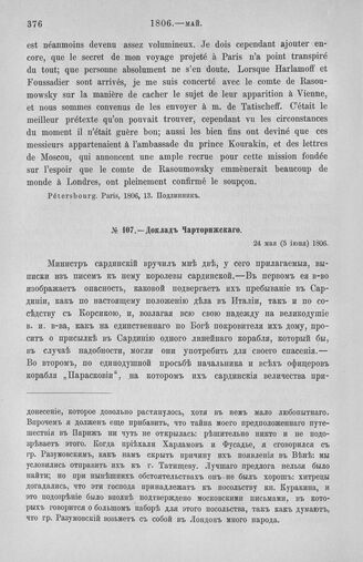 Доклад Чарторижского. Просьба сардинской королевы. 24 мая (5 июня) 1806 г.