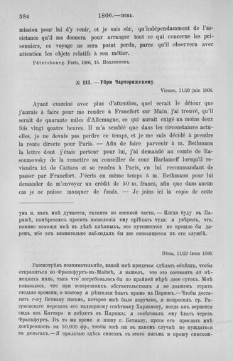Убри Чарторижскому. Деньги. Вена, 11/23 июня 1806 г. // Pétersbourg. Paris, 1806, 16. Подлинник.