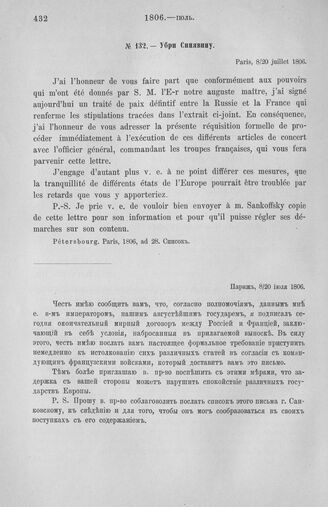 Убри Синявину. Заключение мирного договора. Париж, 8/20 июля 1806 г.