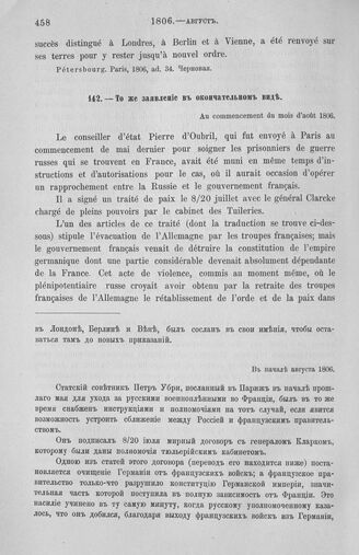Начало месяца. То же заявление в окончательном виде. Германиия. В начале августа 1806 г.