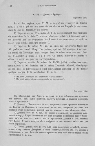 Доклад Будберга. Монахи в Салониках. Али-паша. Мурузи. Рубо-де-Понтеве. Сентябрь 1806 г. // Pétersbourg. Ministère, 1806, 36. Подлинник.