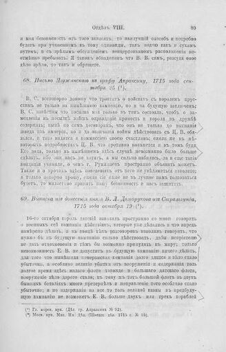 Письмо Ягужинского к графу Апраксину, 1715 года сентября 25
