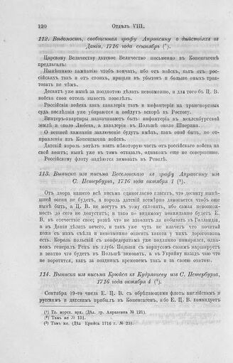 Ведомость, сообщенная графу Апраксину о действиях в Дании, 1716 года сентябрь // Гл. морск. арх. (Дел. гр. Апраксина № 121).