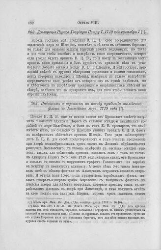 Ведомость о переписке по поводу прибытия английского флота в Балтийское море, 1719 года // Каб. дел. отд. I № 44.