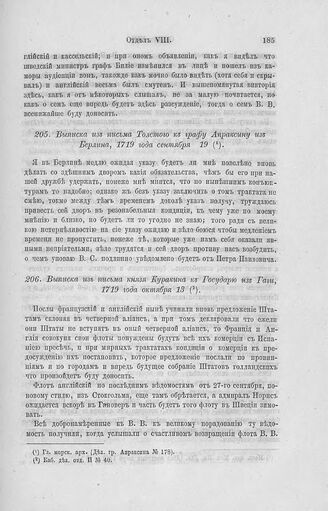 Главная Материалы для истории флота Материалы для истории русского флота. Ч. 4 Документы Выписка из письма Толстого к графу Апраксину из Берлина, 1719 года ...